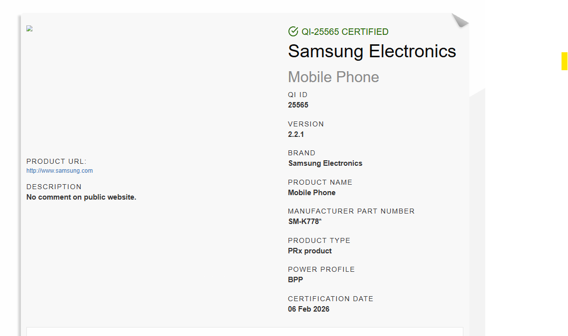 とはいえ、Galaxy S26シリーズではワイヤレス充電の規格自体はアップグレードされる可能性があります。Wireless Power Consortium(WPC)の登録情報によれば、型番「SM-K772」「SM-K777」「SM-K778」とされる3機種がQi 2.2.1規格に対応していることが確認されました。充電速度は現時点で5Wと表示されていますが、Qi 2.2.1はGalaxy S25シリーズで採用されていたQi 2.1.0よりも新しい規格で、最大15W以上の高速充電にも対応可能です。Pixel 10 Pro XLや最新iPhoneも同規格を採用しており、噂される20〜25Wの高速ワイヤレス充電も現実味を帯びてきます。