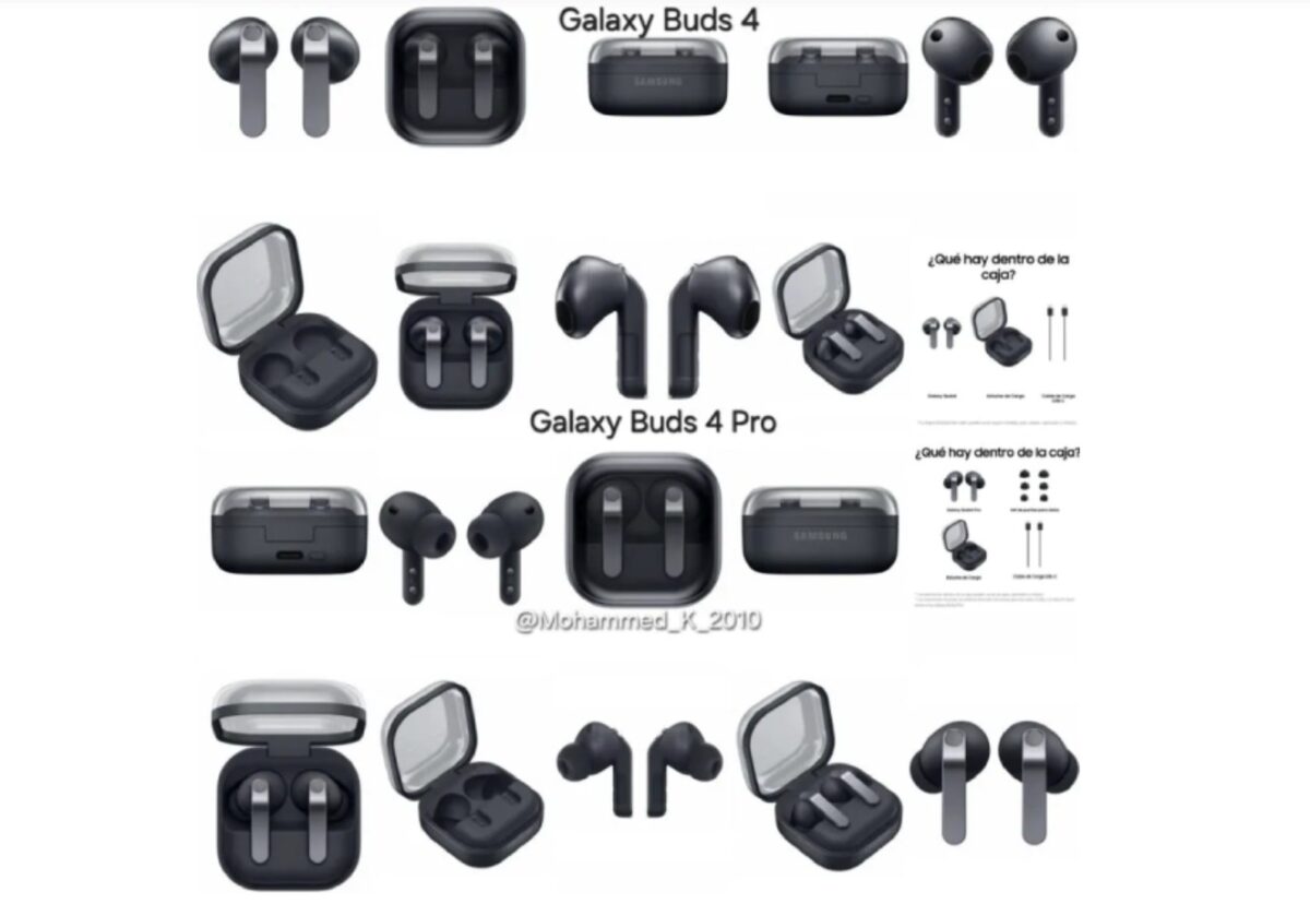 Samsungの次世代ワイヤレスイヤホン「Galaxy Buds 4」と「Galaxy Buds 4 Pro」の詳細が、発売前にウェブ上でリークされました。X(旧Twitter)で公開された画像では、両モデルの全体像が黒色モデルで確認できます。