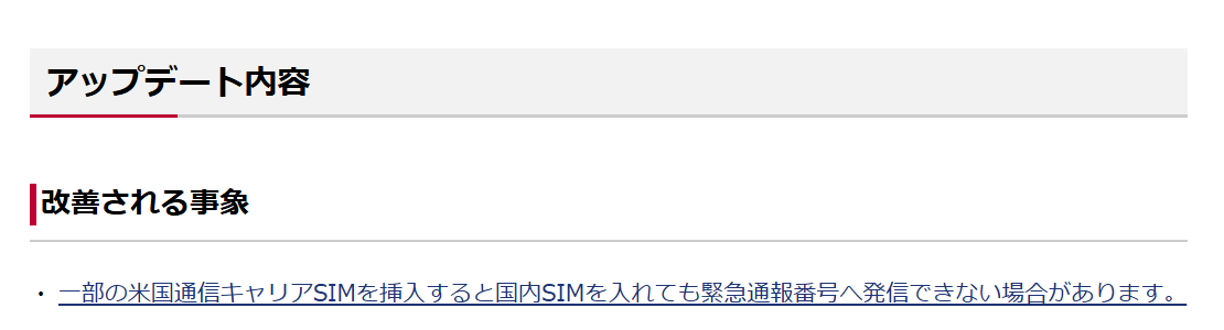 今回のアップデートは、先日大きな話題となった「緊急通報ができない不具合」への対処を含むものとみられます。