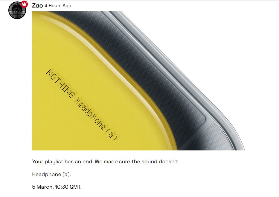 Nothingが次期オーバーイヤーヘッドホン「Headphone a」を正式に予告しました。発表日は3月5日で、同日に登場予定の「Phone 4a」シリーズとあわせてお披露目される予定です。