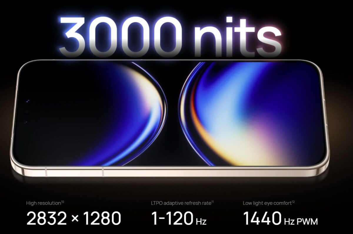 Mate 80 Proは中国版とほぼ同等のスペックを備えており、サイズは高さ161.85mm、幅76mm、厚さ7.95mm、重量約219gです。ディスプレイは6.75インチのLTPO OLEDで、解像度は2832×1280ピクセル、ピクセル密度460ppi。リフレッシュレートは1~120Hzの可変に対応し、1440Hzの高周波PWM調光をサポートしています。表示可能色は最大10.7億色、輝度は3000ニットに達するとのことです。