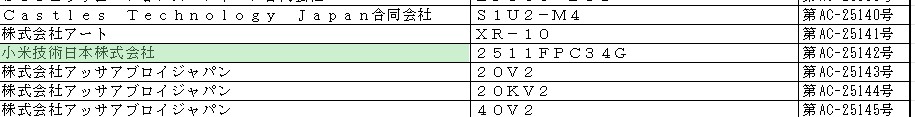 総務省が公示している非接触IC機能に関する「誘導式読み書き設備」の一覧に、シャオミの日本法人である小米技術日本が申請した未発表型番「2511FPC34G」が掲載されていることが判明しました。