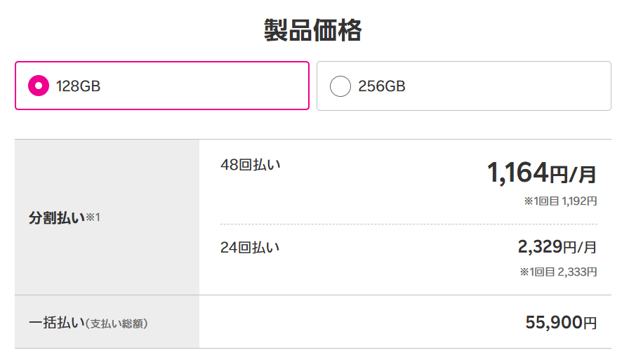 ・128GBモデル:実質5万900円