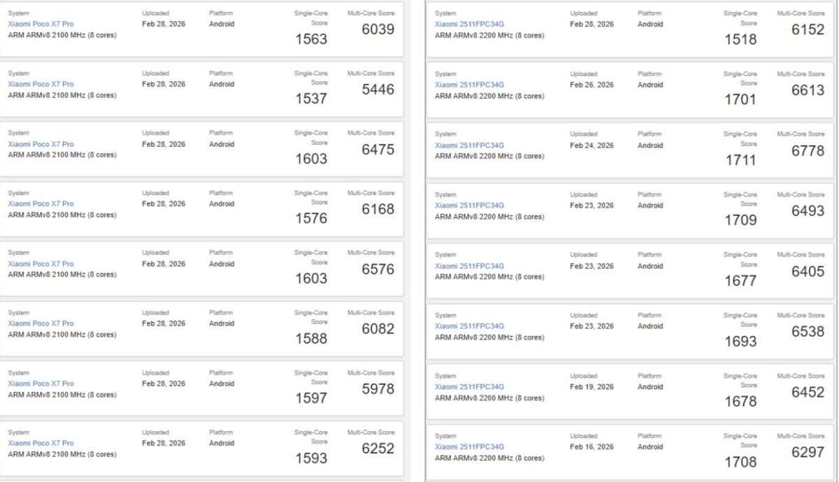 | POCO X7 Pro | 1500〜1600前後 | 約6000 |