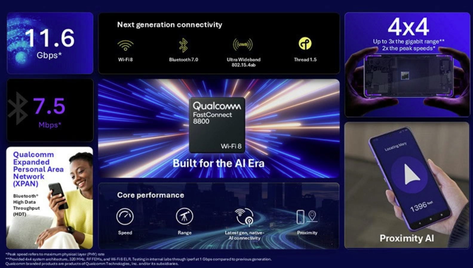 FastConnect 8800は4×4の無線構成を採用しています。従来世代のFastConnect 7900が2×2構成だったのに対し、アンテナ数を倍増させた形です。