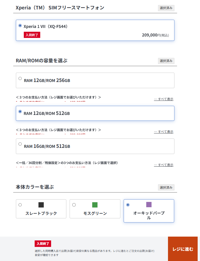Xperia 1 VIIのSIMフリーモデルは、発売当初から比較的長い期間にわたり「入荷待ち」状態が続いていました。