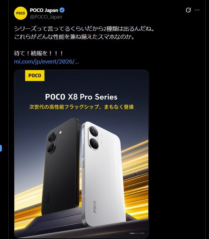 Xiaomiの日本公式Xアカウントが、同社サブブランドであるPOCOの最新スマートフォンを国内発表することを予告しました。
