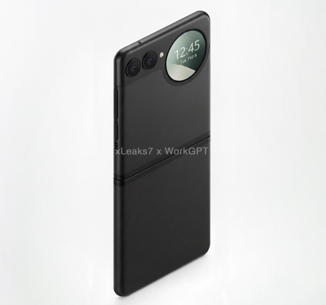 外観で最も目を引くのは、背面上部に配置された大きな円形のカバーディスプレイです。その横にはデュアルカメラとLEDフラッシュが並ぶ構成が想定されています。
