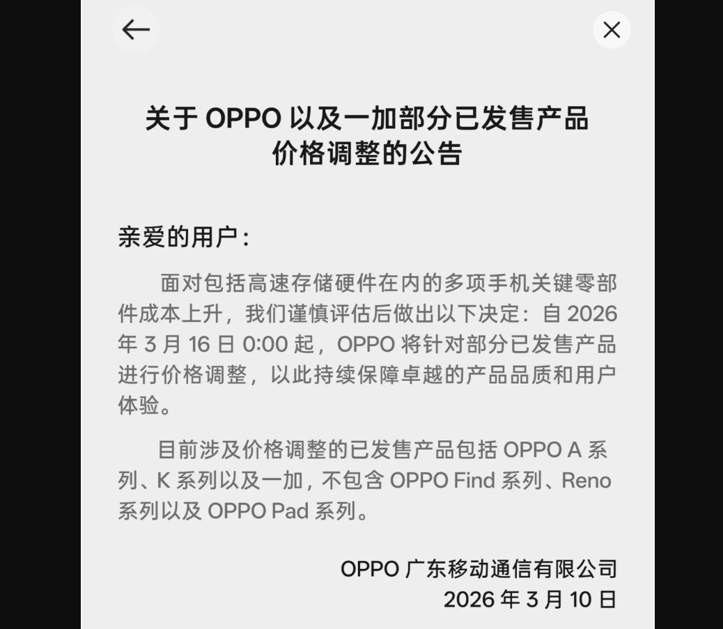 中国メディアの報道によると、Oppoは公式オンラインストアを含む販売チャネルにおいて、3月16日から一部製品の価格を戦略的に調整するとしています。