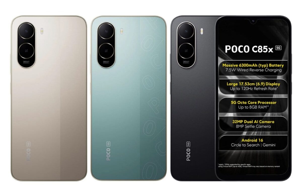 POCO C85x 5Gの価格は10,999インドルピーからで、日本円に換算すると約1万8700円前後となります。およそ132ドルに相当する価格で、5G対応スマートフォンとしてはかなり手頃な設定です。