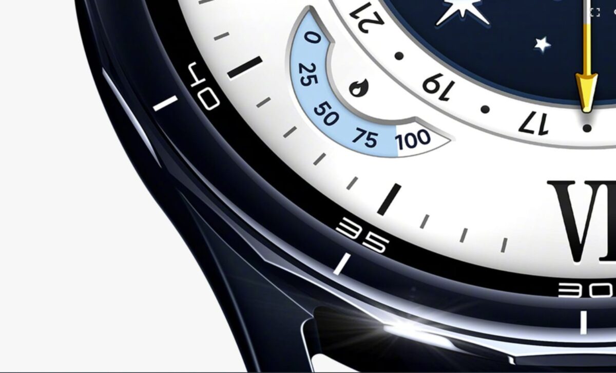 公式のウォッチフェイスはアナログ時計をイメージしたデザインが採用される予定です。ローマ数字のインデックスやムーンフェイズ表示などを備え、クラシックな機械式時計の雰囲気とスマートウォッチの機能を融合させたデザインになるとされています。