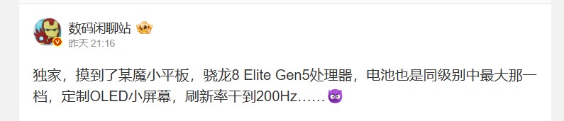 今回の情報は、中国SNSのWeiboで活動する著名リーカーDigital Chat Stationによるものです。それによると、この新型タブレットにはSnapdragon 8 Elite Gen 5が採用される見込みだとされています。