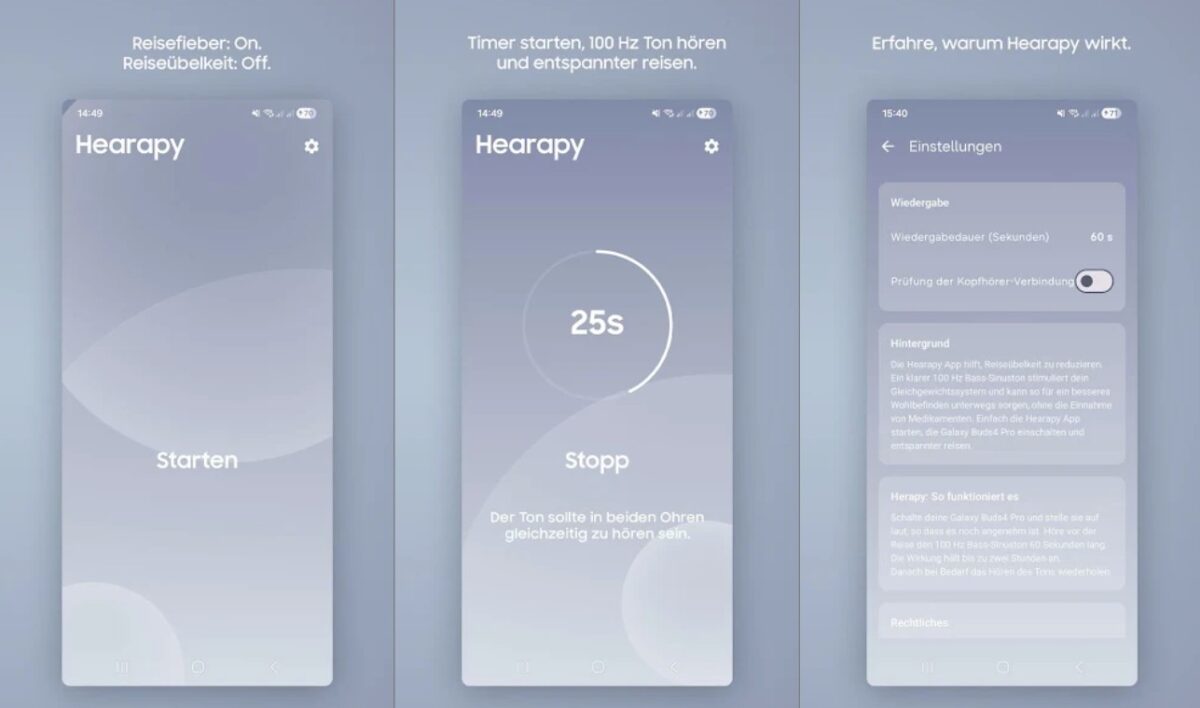サムスンが、乗り物酔いの軽減を目的とした新しいアプリ「Hearapy」を公開しました。Galaxy Buds向けの機能として紹介されていますが、実際には条件を満たせば他社製イヤホンでも利用できる点が注目されています。