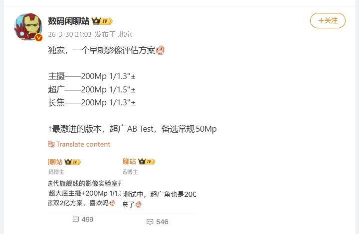 中国SNSの著名リーカーによると、OPPOは現在、200MPカメラを3基搭載する構成をテスト中とのことです。具体的には、広角・超広角・望遠のすべてに200MPセンサーを採用する可能性があるとされています。