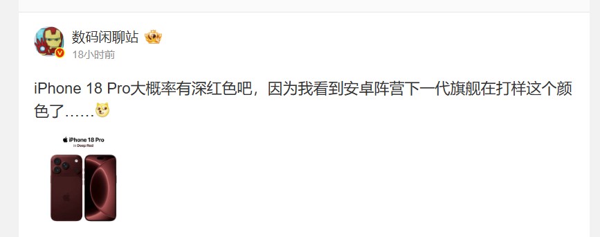 今回の情報は信頼性の非常に高い有名リーカー、Digital Chat Station氏からのもので、これによるとiPhone 18 ProおよびiPhone 18 Pro Maxには、従来にない落ち着いたトーンのレッドカラーが用意される可能性があるとされています。