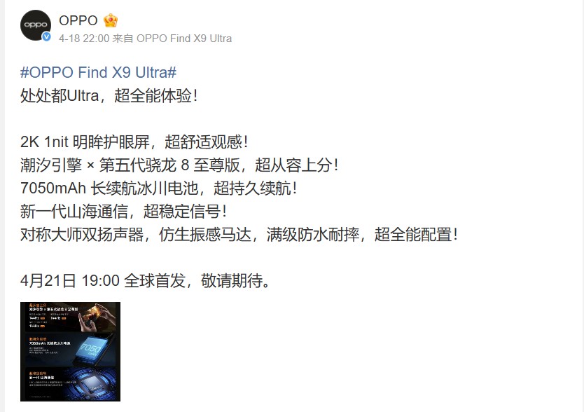 Find X9 Ultraには、最新のSnapdragon 8 Elite Gen 5が搭載されることが正式に確認されました。加えて、OPPO独自の最適化技術と組み合わせることで、高いパフォーマンスと電力効率の両立が図られるとみられます。
