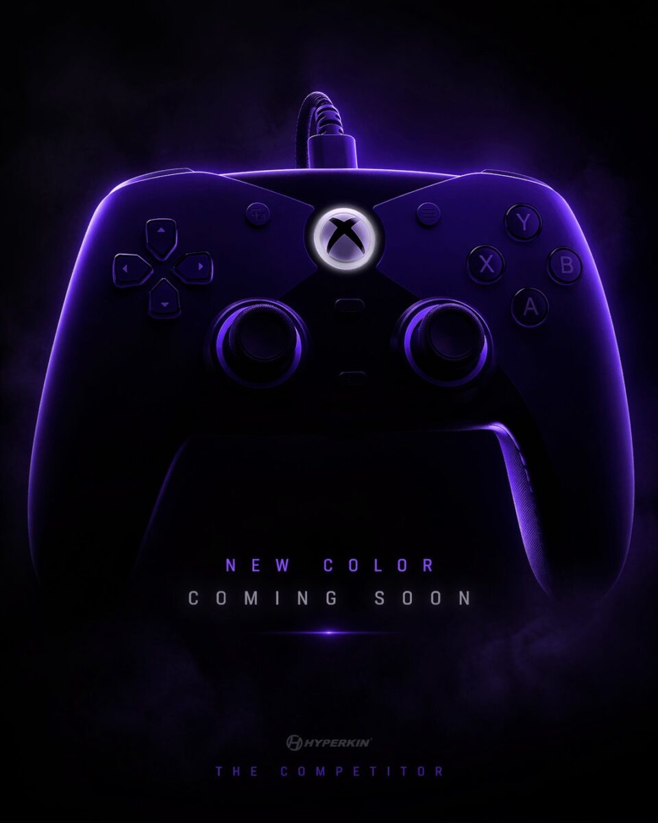 周辺機器メーカーのHyperkinが、PlayStation風デザインを採用したXbox向けコントローラー「The Competitor」に新たなカラーバリエーションを追加することを示唆しました。公式Xアカウントで公開されたティザー画像から、次の新色はパープルになる可能性が高いと見られています。
