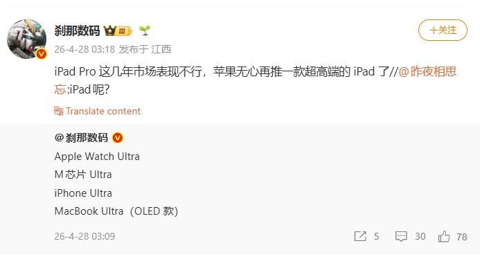 すでに高価格帯のiPadが伸び悩んでいる中で、さらに高額なUltraモデルを投入する判断は難しかったのかもしれません。